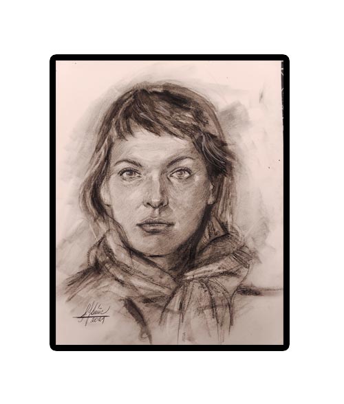 1. RETRATO A CARBONCILLO DE 1 PERSONA (Medidas 30 x 42 cm): Precio: 60 Euros